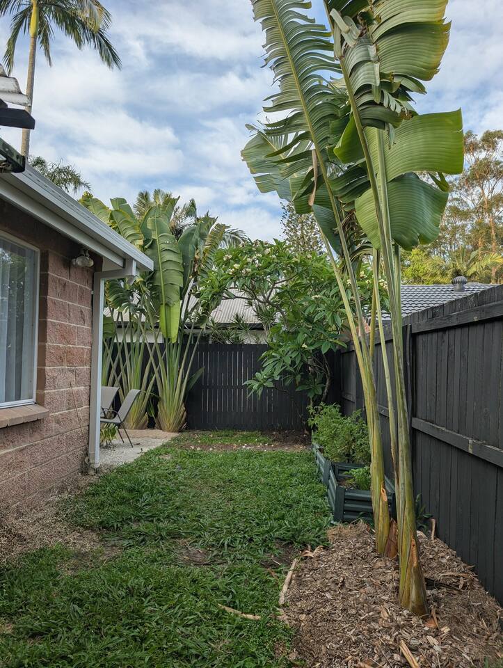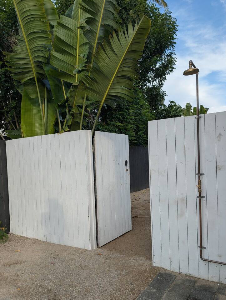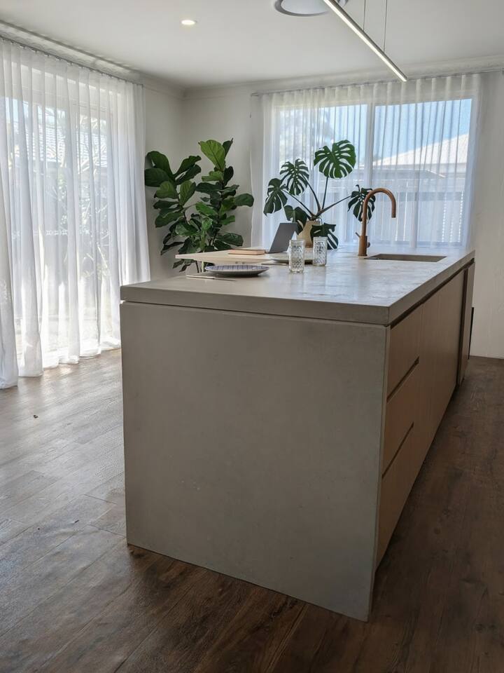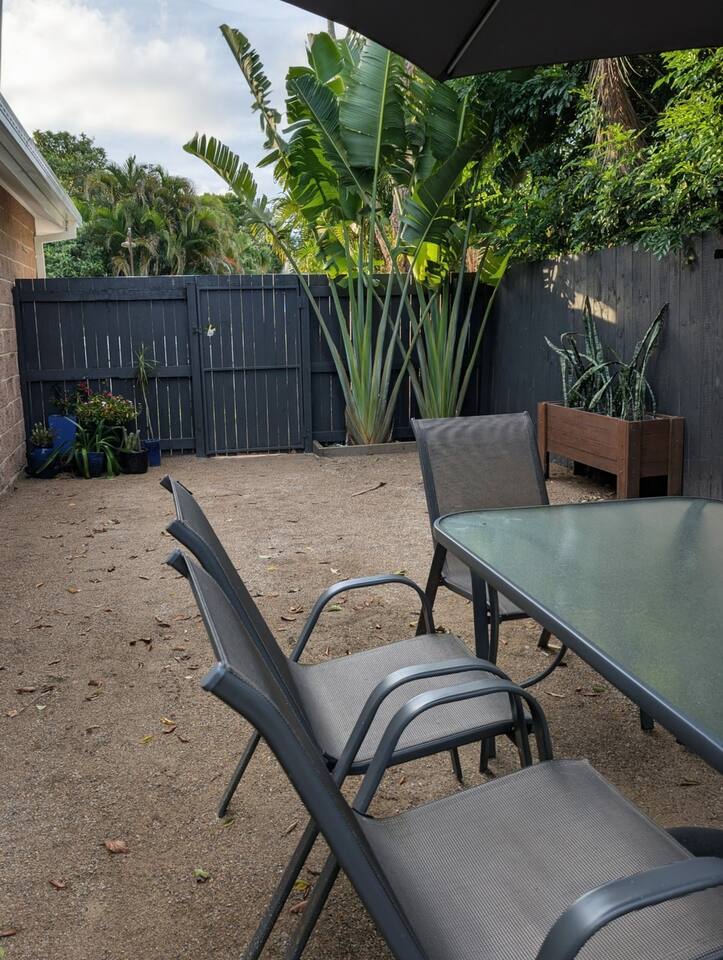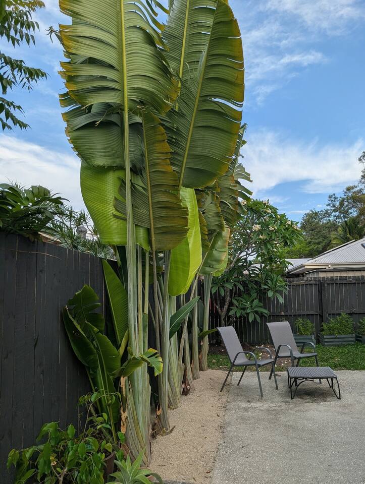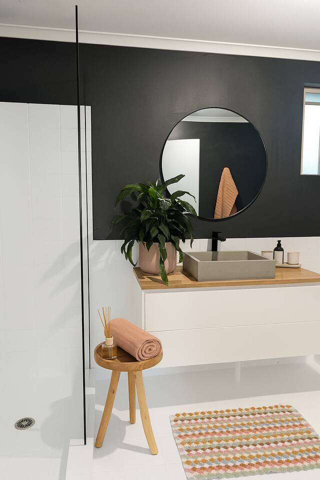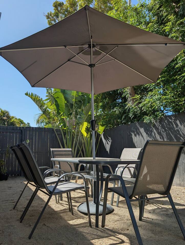 Blending modern comfort with relaxed style, this sun-drenched single-story home is designed for connection and relaxation. The open-plan layout creates a seamless flow from the living areas to your private garden oasis. * **Living & Dining:** Unwind in the spacious living area on the large, deep sectional sofa for a movie night on the big-screen TV (with Netflix, Prime Video, and Foxtel). Enjoy meals together at the rustic dining table, the kitchen island bar, or the outdoor dining setting. * **Kitchen & Bath:** Create delicious meals in the newly renovated, fully equipped kitchen, complete with a Breville espresso machine and bean grinder, dishwasher, a stove with an air fryer, and a wine fridge. The full-size bathroom offers both a relaxing bathtub and a separate walk-in shower. * **Sleeping Arrangements (Up to 6 Guests):** * **Bedroom 1:** A serene space with a King bed, wardrobe, dresser, blackout blinds, and its own ceiling fan and individually controlled ducted air conditioning. * **Bedroom 2:** A beautiful room with a Queen bed, open shelves, blackout blinds, and its own ceiling fan and individually controlled ducted air conditioning. * **Flexible Sleeping:** A double pull-out sofa, an extra-deep sofa, and two comfortable fold-out mattresses (one king single, one single) are available upon request. * **Private Garden Oasis:** Step outside into the large, fully fenced garden, bordered by the leafy trees of the quiet park just beyond the fence—offering extra greenery and a peaceful outlook. Lounge in the hammock, fire up the BBQ, or rinse off after a day at the beach in the refreshing outdoor shower. **Comfort & Convenience:** * Super-fast Starlink internet and an adjustable standing desk. * Ducted air-conditioning with heating function and room-by-room temperature control. * Two complimentary bikes with locks and helmets. * Laundry room with a washer and dryer. * Beach towels, a beach umbrella, and a clothes steamer. * Bluetooth sound system, books, and board games. * Pet-friendly: We welcome well-behaved pets! Please let us know in advance if you’re bringing one. (Limit: 2. No pets on furniture, please.)