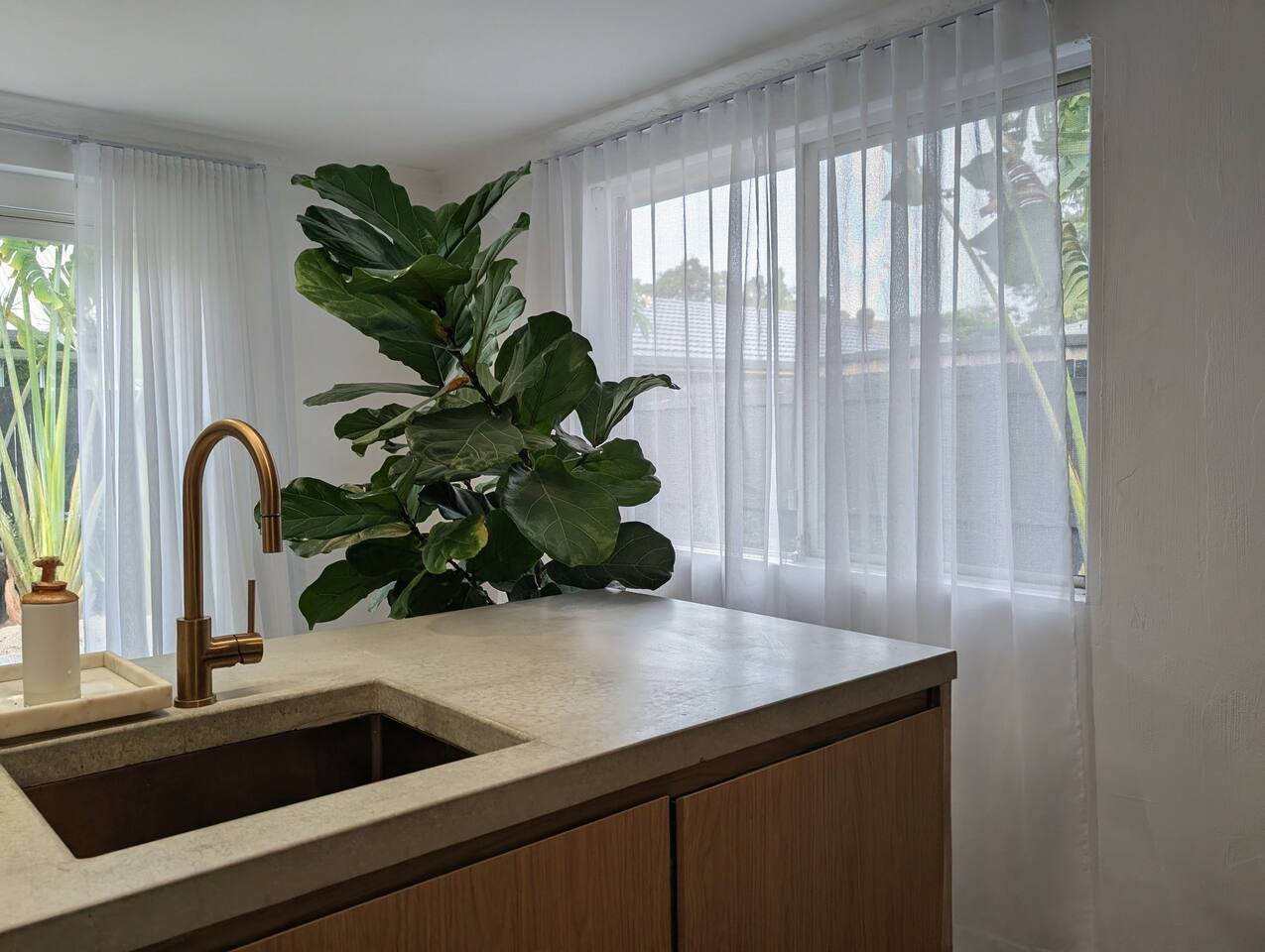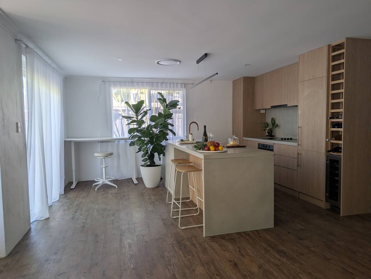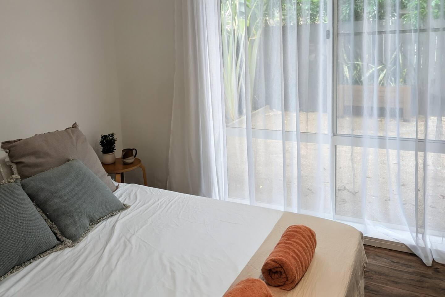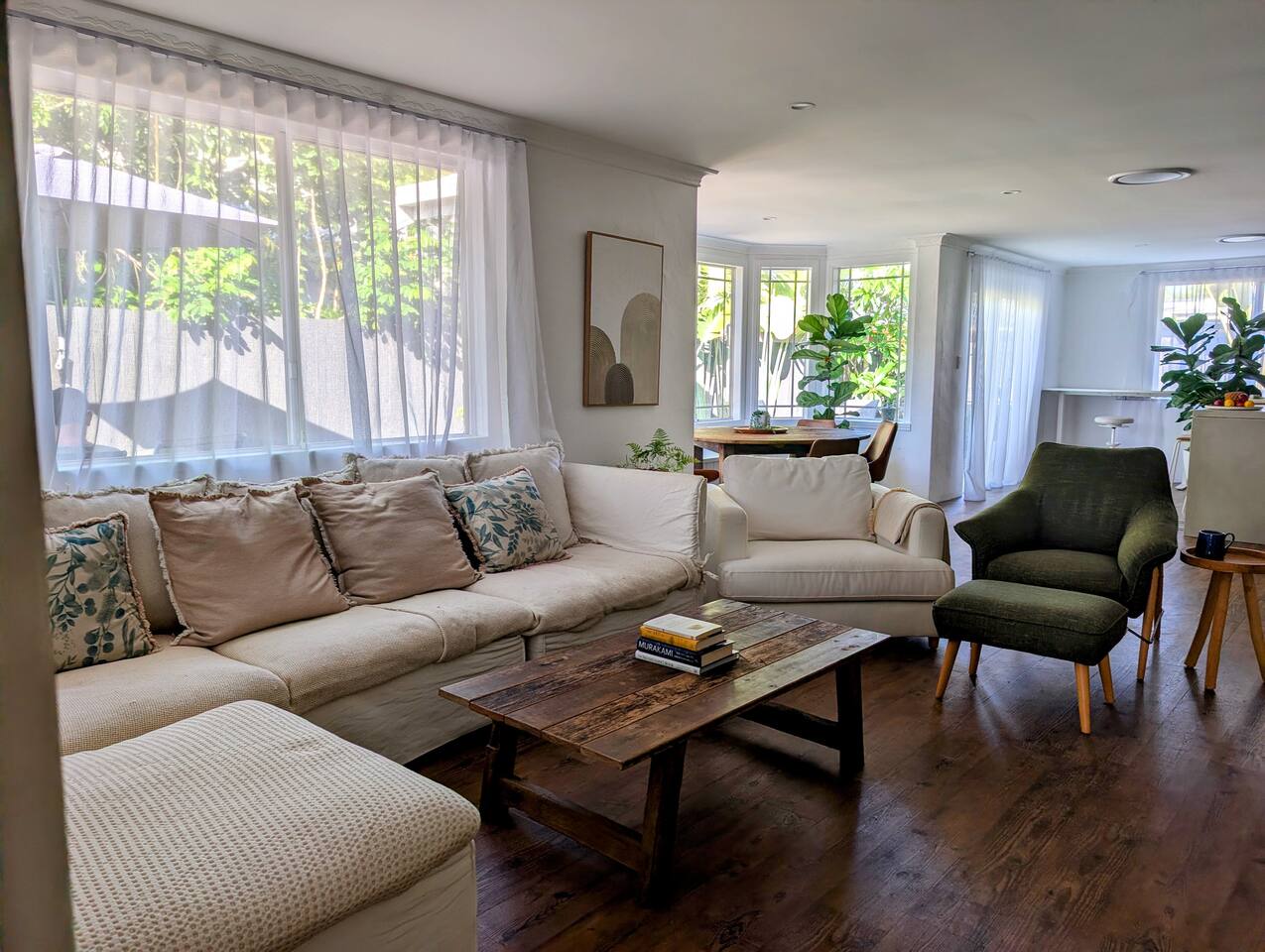 Blending modern comfort with relaxed style, this sun-drenched single-story home is designed for connection and relaxation. The open-plan layout creates a seamless flow from the living areas to your private garden oasis. * **Living & Dining:** Unwind in the spacious living area on the large, deep sectional sofa for a movie night on the big-screen TV (with Netflix, Prime Video, and Foxtel). Enjoy meals together at the rustic dining table, the kitchen island bar, or the outdoor dining setting. * **Kitchen & Bath:** Create delicious meals in the newly renovated, fully equipped kitchen, complete with a Breville espresso machine and bean grinder, dishwasher, a stove with an air fryer, and a wine fridge. The full-size bathroom offers both a relaxing bathtub and a separate walk-in shower. * **Sleeping Arrangements (Up to 6 Guests):** * **Bedroom 1:** A serene space with a King bed, wardrobe, dresser, blackout blinds, and its own ceiling fan and individually controlled ducted air conditioning. * **Bedroom 2:** A beautiful room with a Queen bed, open shelves, blackout blinds, and its own ceiling fan and individually controlled ducted air conditioning. * **Flexible Sleeping:** A double pull-out sofa, an extra-deep sofa, and two comfortable fold-out mattresses (one king single, one single) are available upon request. * **Private Garden Oasis:** Step outside into the large, fully fenced garden, bordered by the leafy trees of the quiet park just beyond the fence—offering extra greenery and a peaceful outlook. Lounge in the hammock, fire up the BBQ, or rinse off after a day at the beach in the refreshing outdoor shower. **Comfort & Convenience:** * Super-fast Starlink internet and an adjustable standing desk. * Ducted air-conditioning with heating function and room-by-room temperature control. * Two complimentary bikes with locks and helmets. * Laundry room with a washer and dryer. * Beach towels, a beach umbrella, and a clothes steamer. * Bluetooth sound system, books, and board games. * Pet-friendly: We welcome well-behaved pets! Please let us know in advance if you’re bringing one. (Limit: 2. No pets on furniture, please.)